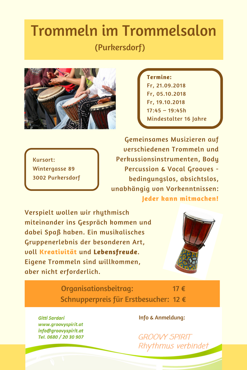 Info & Anmeldung: info@groovyspirit.at, 0680 2030907