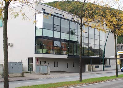 Interessant: im ersten Stock findet man jetzt links einen Schauraum mit Auslage für Maßmöbel! Auf der rechten Seite das Stiegenhaus.