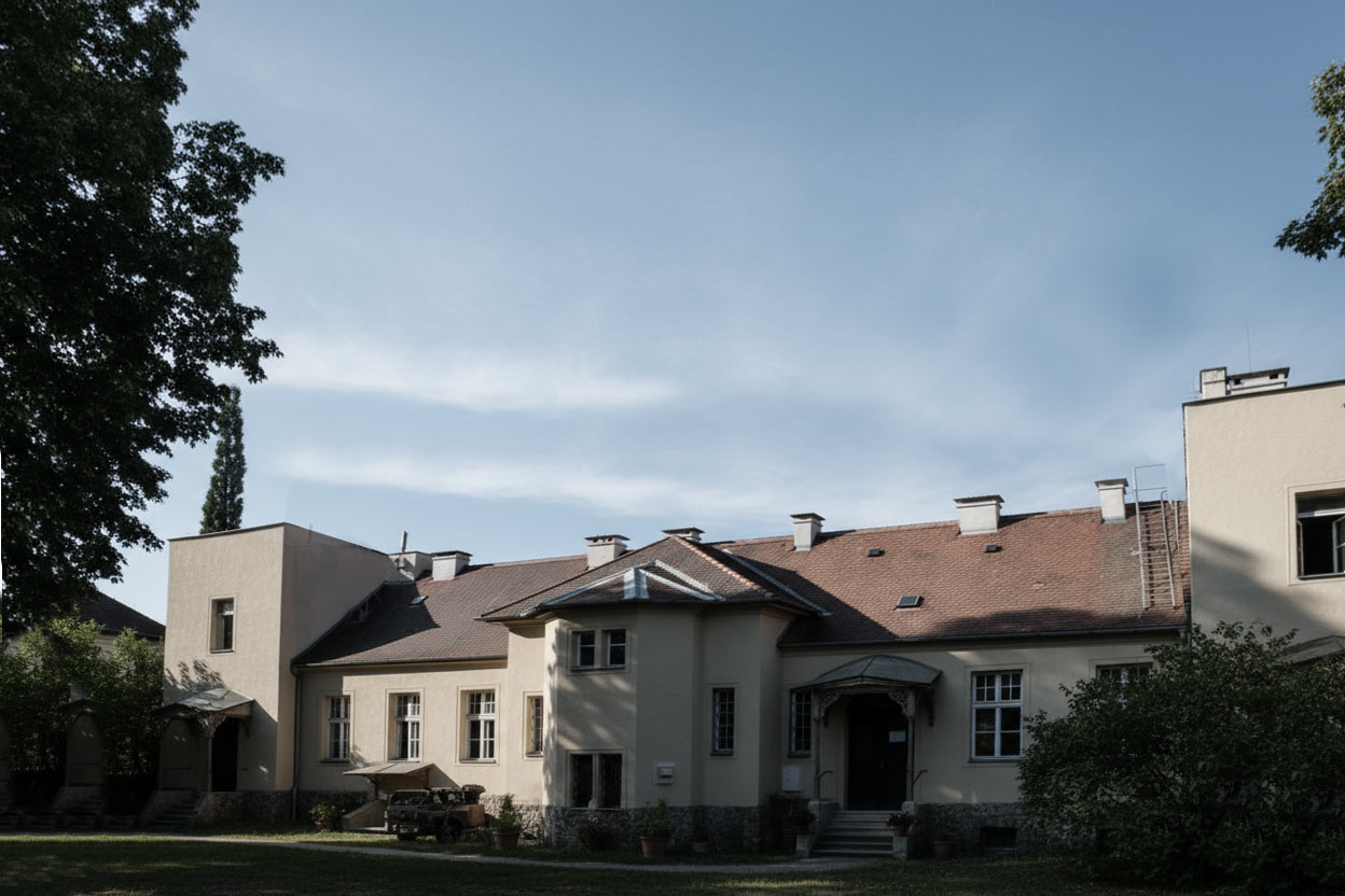 Hier machen wir einmal ein Experiment: Die Rückansicht des alten Gebäudes, erzeugt aus einer unscharfen Luftaufnahme mittels Künstlicher Intelligenz.